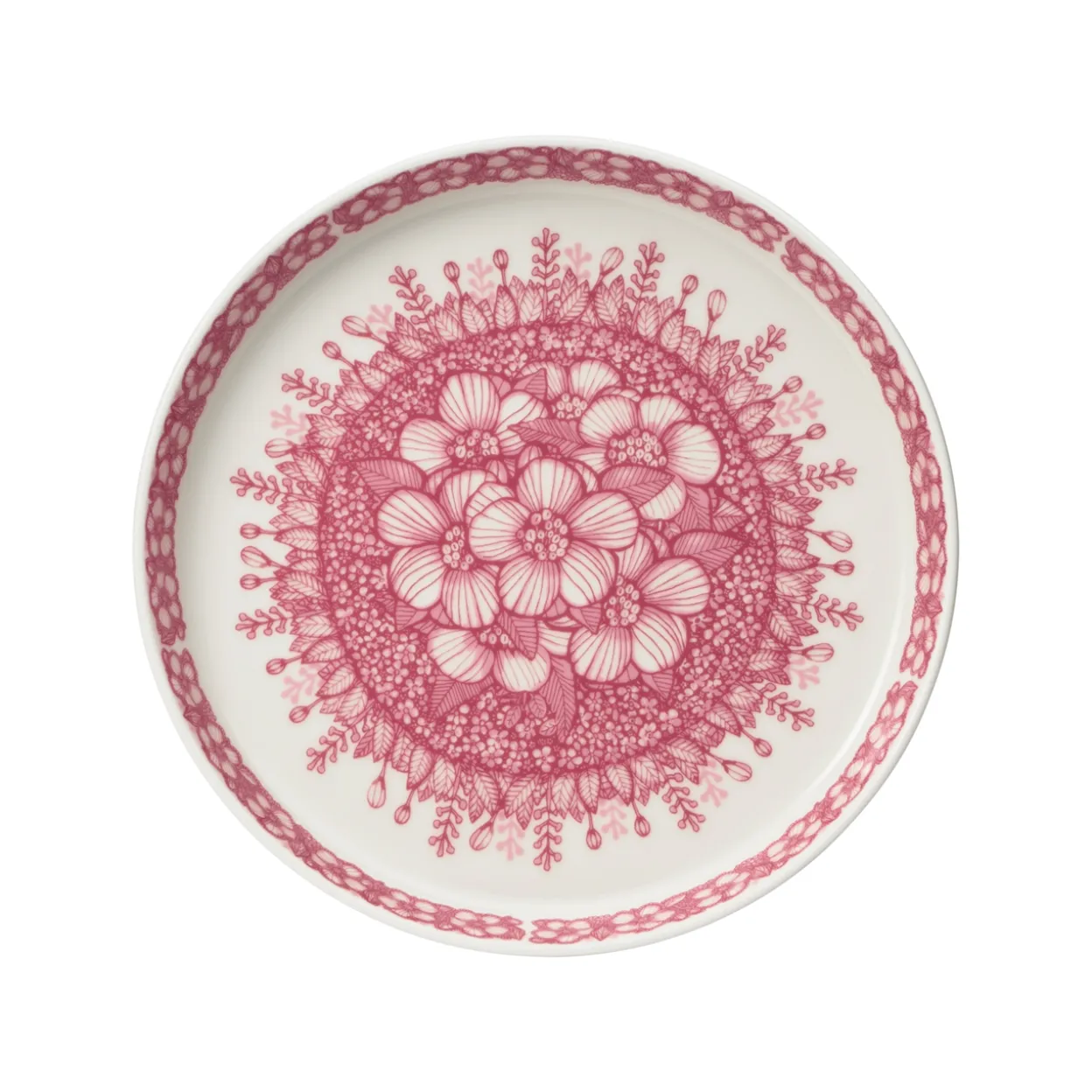 Halkaisijaltaan 19cm lautasta koristaa Heini Riitahuhdan vuonna 2017 suunnittelema Huvila-kuvio. Kuvio on saanut inspiraation mummolasta ja sen tunnelmasta. Heinin käsivarapiirrolla syntyneen kukkakuvion esikuva on villiruusu, jossa on ripaus vanhaa suomalaisuutta ja vanhaa Arabiaa. Arabian rakastetut kuviot tuovat iloa jokaiseen päivään.