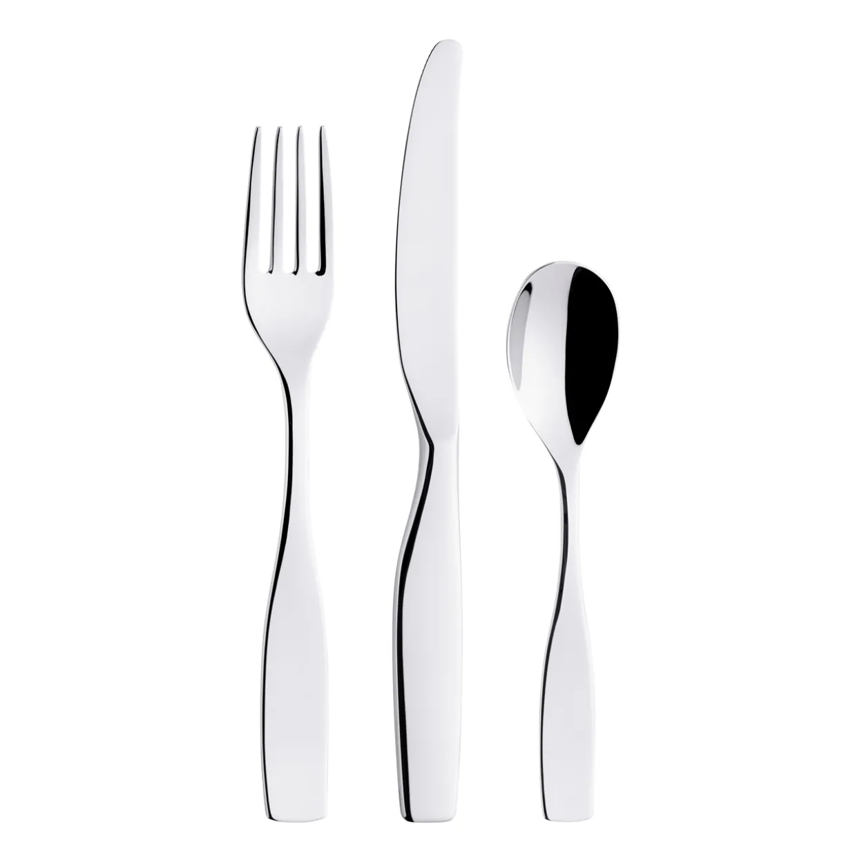 Citterio 98 -jälkiruokasetti tarjoaa harkitun tulkinnan arjen tärkeistä yksityiskohdista. Antonio Citterion ja Glen Oliver Löwin suunnittelemat keskipitkät lusikat, haarukat ja veitset sopivat alkuruoille, jälkiruoille, brunssille tai pienille käsille. Valmistettu kiiltävästä 18/10-teräksestä, joka tuo kattaukseen tasapainoa ja eleganssia.