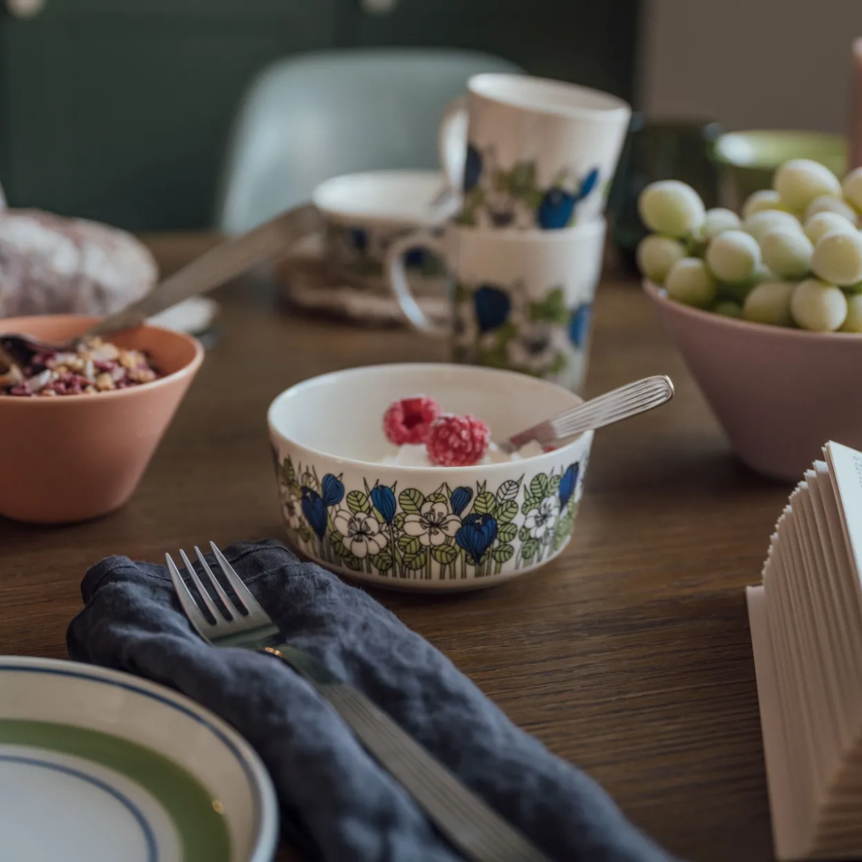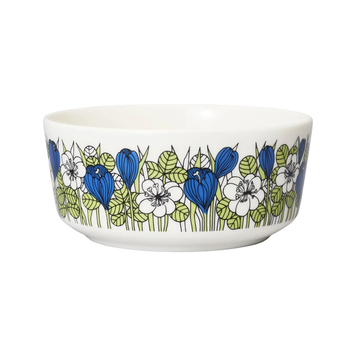 Arabialle elämäntyönsä tehnyt Esteri Tomula suunnitteli kauniin Krokus-kuvion 1970-luvun lopulla. Nyt se koristaa tämän päivän astiamuotoja Arabian rakastetut kuviot -sarjassa. Tomulan käsiala ja yksityiskohtien runsaus tulee kauniisti esille monikäyttöisessä kulhossa. Kulho 13cm sopii keitolle, puurolle, jälkiruoille ja tarjoiluun. Konepesun kestävä.