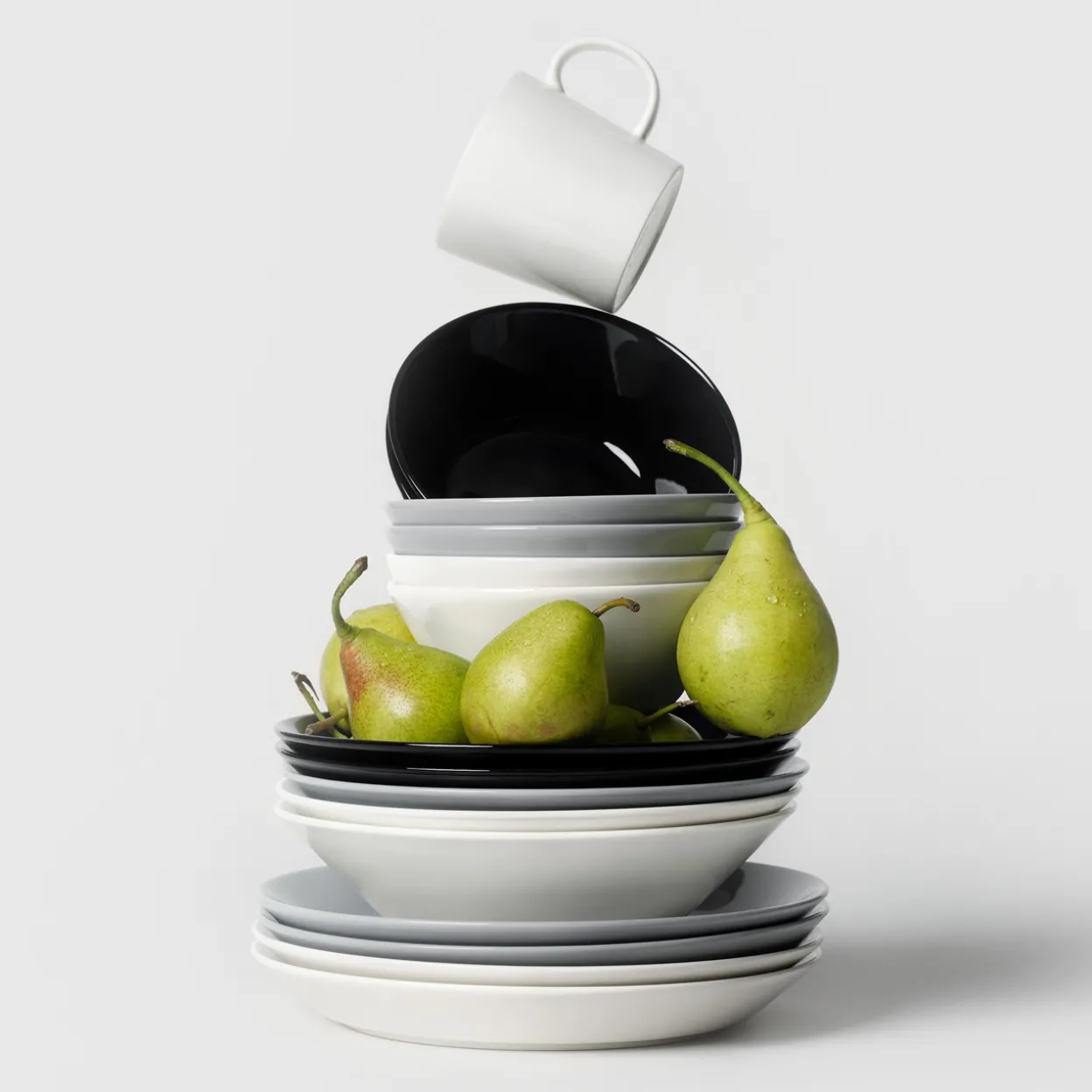 Kaj Franckin Teema-sarja on monikäyttöinen ja funktionaalinen kokoelma, jonka jokainen osa perustuu selkeään muotoon: ympyrään, neliöön ja suorakaiteeseen. Jokainen osa on suunniteltu monikäyttöiseksi käyttäjän ainutlaatuisten tarpeiden mukaisesti. Teema-kulho (15 cm) sopii täydellisesti kaurapuurolle, jogurtille ja muille aamiaisruoille. Musta väri tuo kattaukseen hienostuneisuutta, ja sitä voi yhdistää sarjan muihin väreihin. Kaikki sarjan kestävät ja monikäyttöiset osat ovat uunin, pakastuksen, konepesun ja mikroaaltouunin kestäviä. Sarja on ikoninen klassikko, joka edustaa minimalistista pohjoismaista muotoilua. Se on hieno lahja häihin tai tupaantuliaisiin.