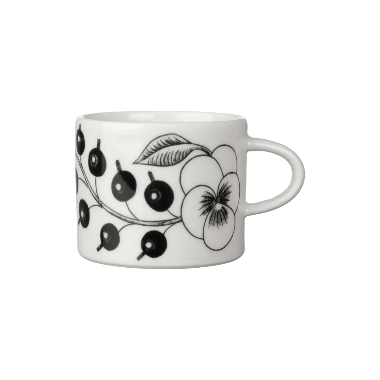 Paratiisi-sarjassa yhdistyy selkeälinjainen muotoilu ja runsas hedelmä- ja orvokkikuvio. Mustavalkoinen väritys on yksi sarjan alkuperäisistä, korostaen kuvion graafisuutta entisestään. Paratiisi 0,18L kahvikuppi on yhteensopiva astiaston 14cm alusvadin kanssa. Yhdistä mustavalkoisia astioita valkoisten, mustien ja värikkäidenkin astioiden kanssa.