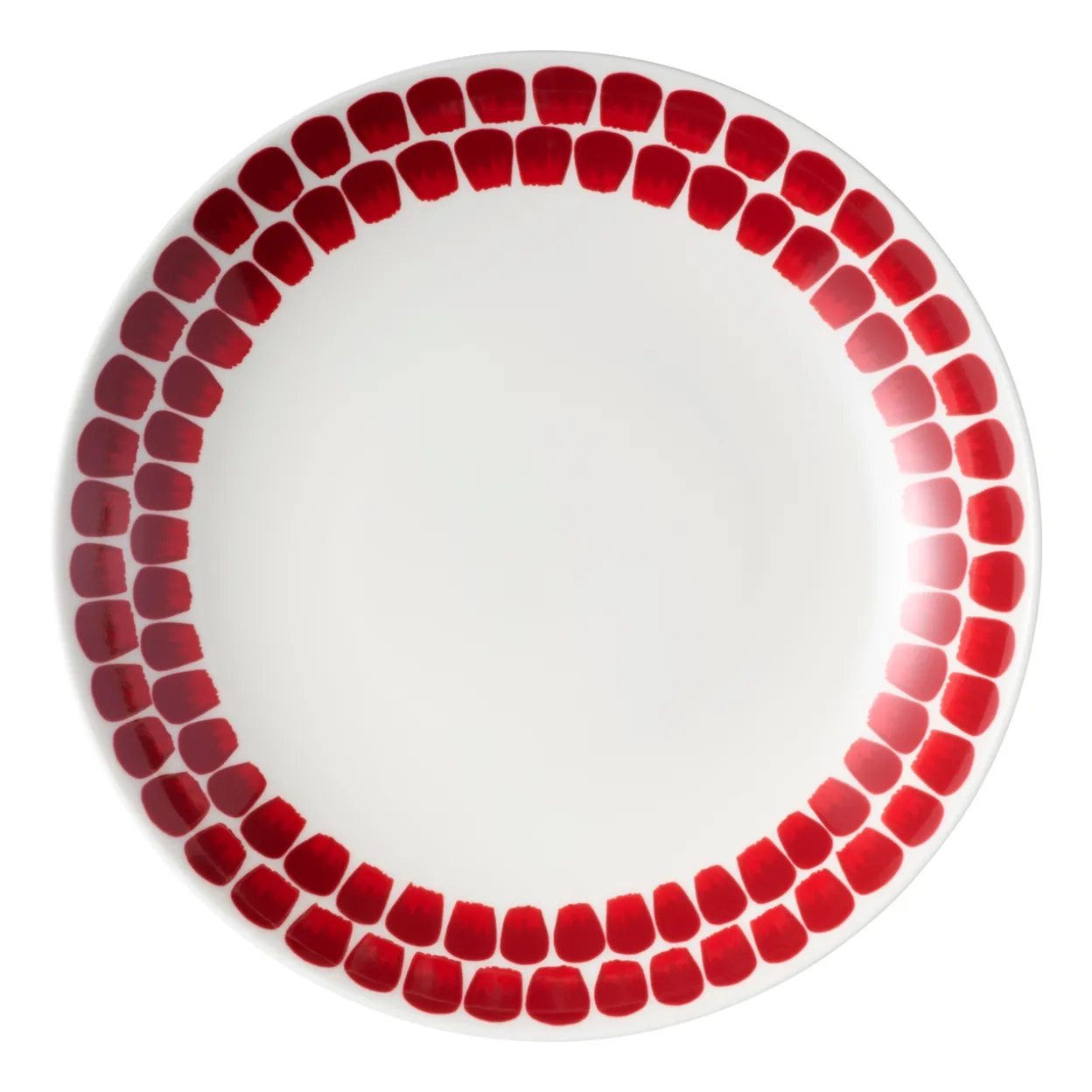 Tuokio-lautanen on täydellinen astia kaikkiin ruokailuhetkiin päivän jokaisena tuokiona. Raikkaan pehmeälinjaisessa lautasessa on yhtenäinen peilipinta ilman erillisiä reunoja. Punainen Tuokio-koriste piirtää lautaselle kuin reunat ja kuvaa koristeellaan ajan intensiivisyyttä. Halkaisijaltaan lautanen on 24 cm. Ihana lahjaidea.