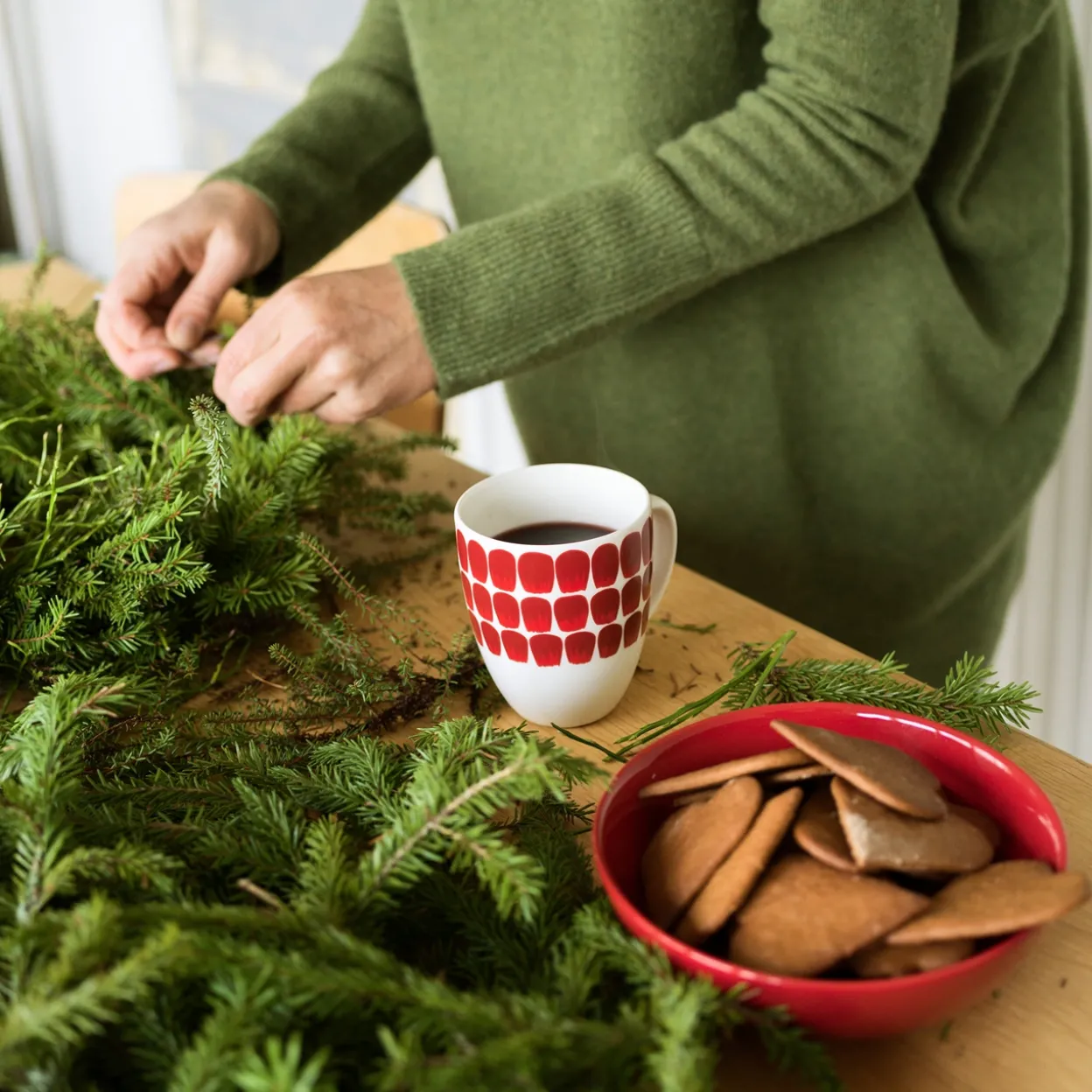 Suomalaisten rakastama Tuokio-kuvio on saanut joulun kunniaksi marjaisan punaisen sävyn. Pensselinvetoja muistuttava Tuokio-kuvio koristaa mukia nyt uudessa värissä. Moneen kotiin sopiva kaunis ja käytännöllinen lahjaidea läheiselle. Sesonkituote.