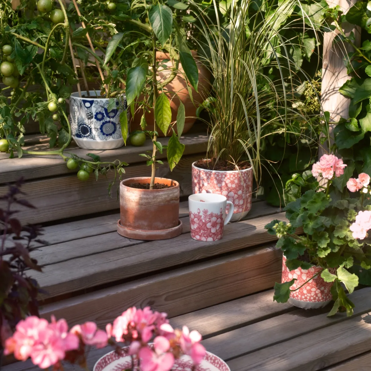 Heini Riitahuhdan Huvila-sarja täydentyy kukkaruukuilla. Mummolan puutarhan tunnelmasta inspiroitunut Huvila on käsivaralla piirretty herkkä villiruusukuvio, joka sopii kauniisti kukkaruukun pinnalle. Vaaleanpunainen sävy sopii yhdisteltäväksi muiden kukkaruukkujen kanssa. Luo oma sisäpuutarhasi tai anna lahjaksi ystävälle.