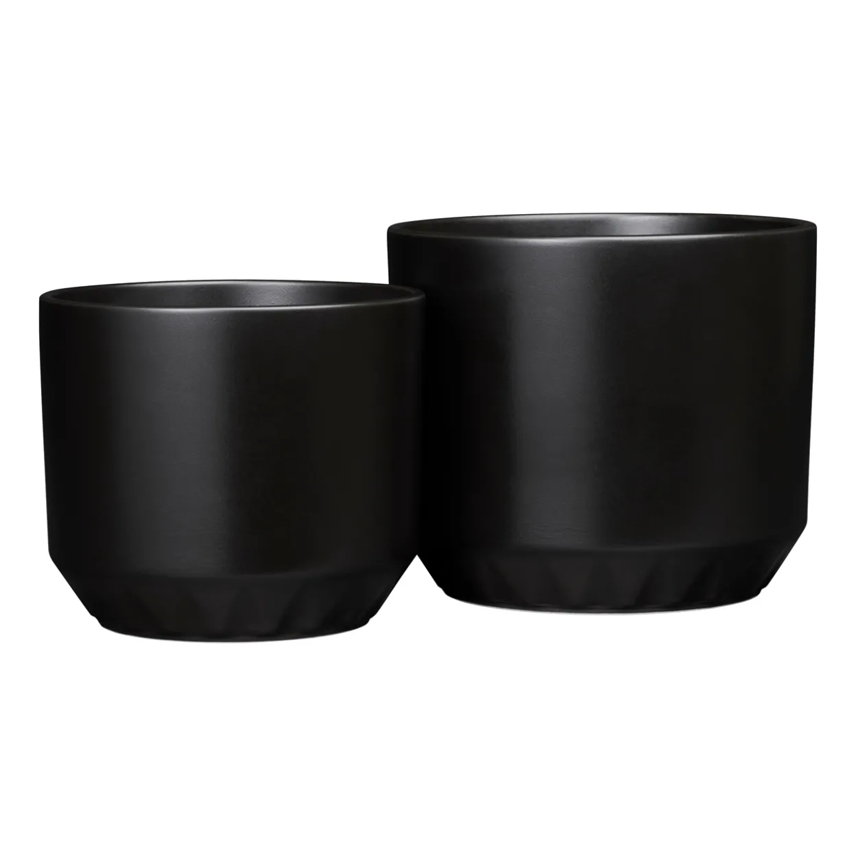 Matta musta Ilona-suojaruukku sopii monenlaisille kukille ja viherkasveille. Neutraali väritys, kaunis mattapinta, moderni muotokieli ja ruukun alareunan hienostunut kohokuvio tekevät ruukusta kauniin lisän kodin sisustukseen. Ruukun musta väri korostaa kauniisti kasvien omia sävyjä. Yhdistä muiden eriväristen ja kokoisten Ilona-ruukkujen tai Arabian kuvioitujen ruukkujen kanssa ja luo oma kokonaisuutesi.