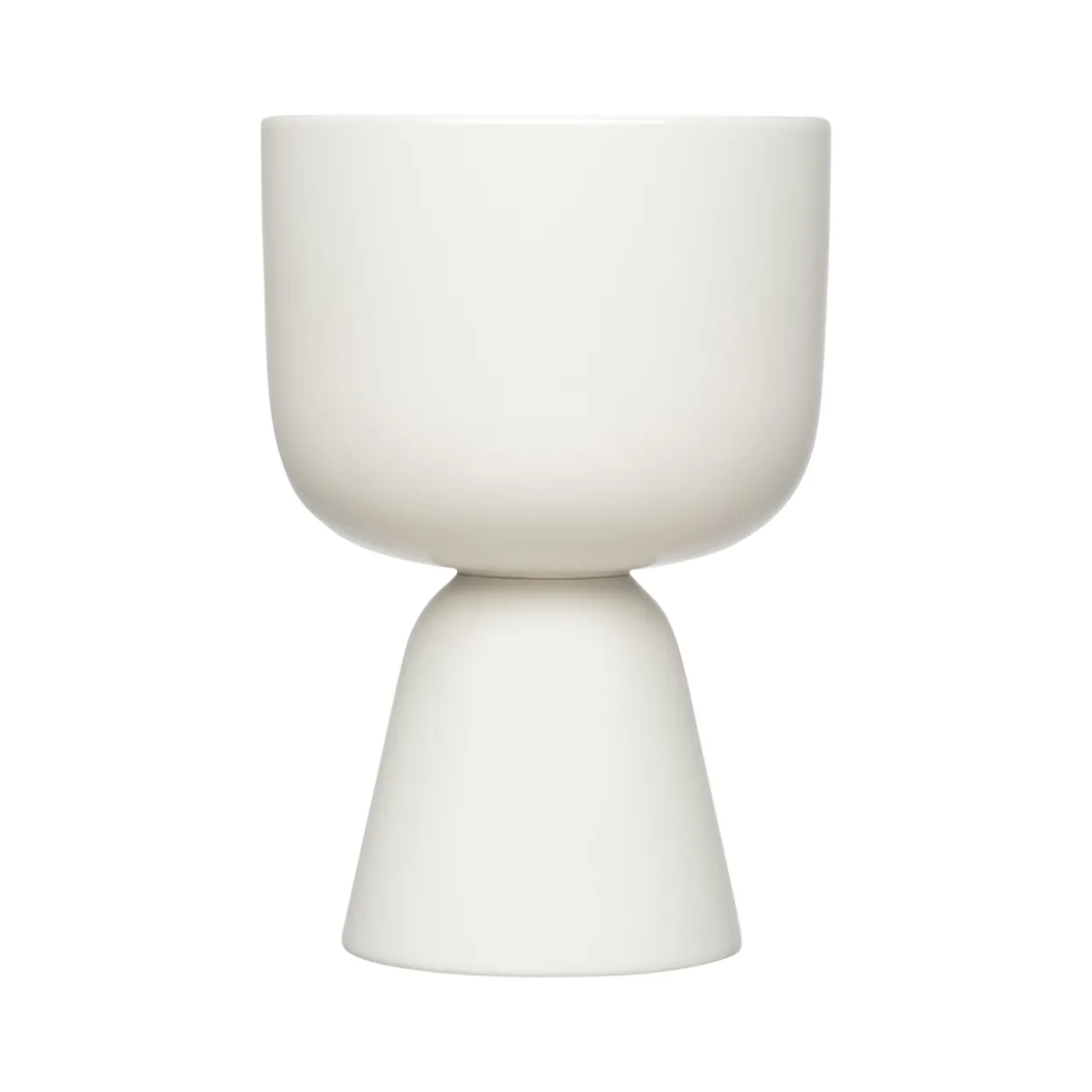 Muotoilija Matti Klenell sai idean Nappula-kynttiläjalkaan erikoisenmuotoisista pöydänjaloista. Klenellille niiden muoto toi mieleen Oiva Toikan ja Kaj Franckin töissä toistuvat muodot. Pohjoismaisen muotoilun klassikoksi muodostuneen Nappula-ruukun pienempi versio tuo kasvit ja kukat kauniisti esiin. Keraamisen ruukun selkeä muoto tuo uutta inspiraatiota kodin viherkasvien asetteluun. Selkeä valkoinen sopii kaikkiin sisustuksiin. Näyttävä yksinään tai ryhmäksi koottuna. Täydellinen lahja.