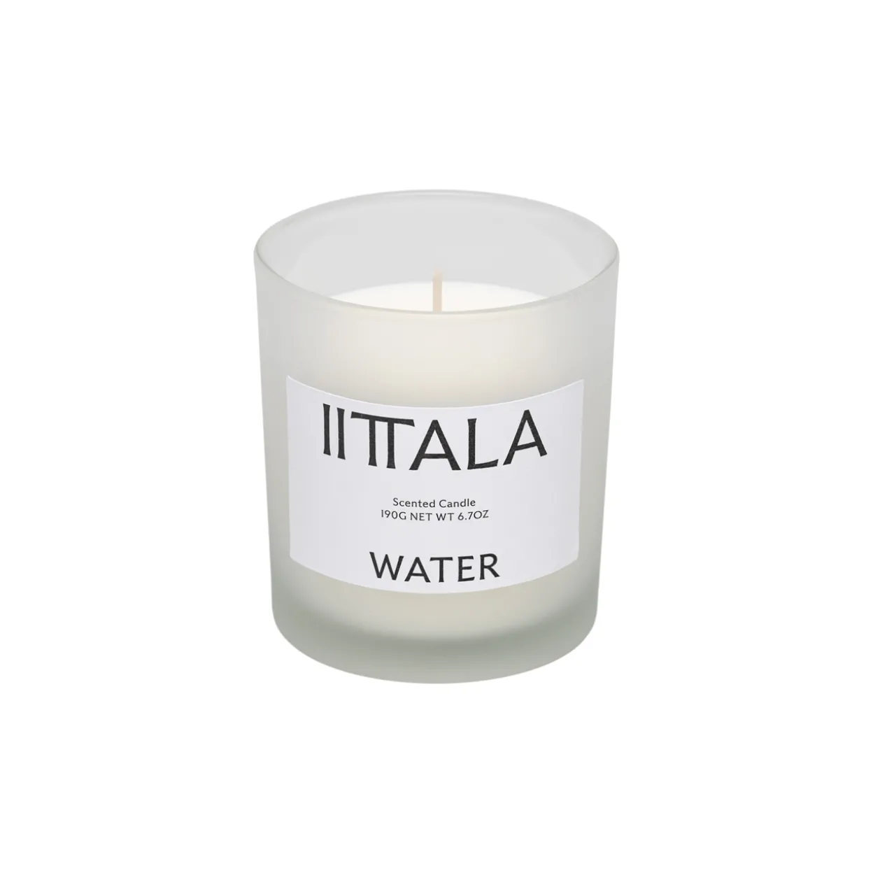 Raikas ja rauhoittava Vesi-tuoksukynttilä tuo mieleen pohjoismaisen järvimaiseman ja sitoo tuoksuun muodon yhden lasinvalmistuksen keskeisistä elementeistä. Tuoksu alkaa osonilla, korianterilla ja vihreillä lehdillä, jatkuu salvialla, lumpeella ja patsulilla ja päättyy ambraan, myskiin ja setripuun vivahteisiin. Kasvivahainen kynttilä palaa puhtaasti huurrelasissa. Leikkaa sydänlankaa säännöllisesti (3–6 mm) Iittalan kynttiläsaksilla optimaalista palamista varten.